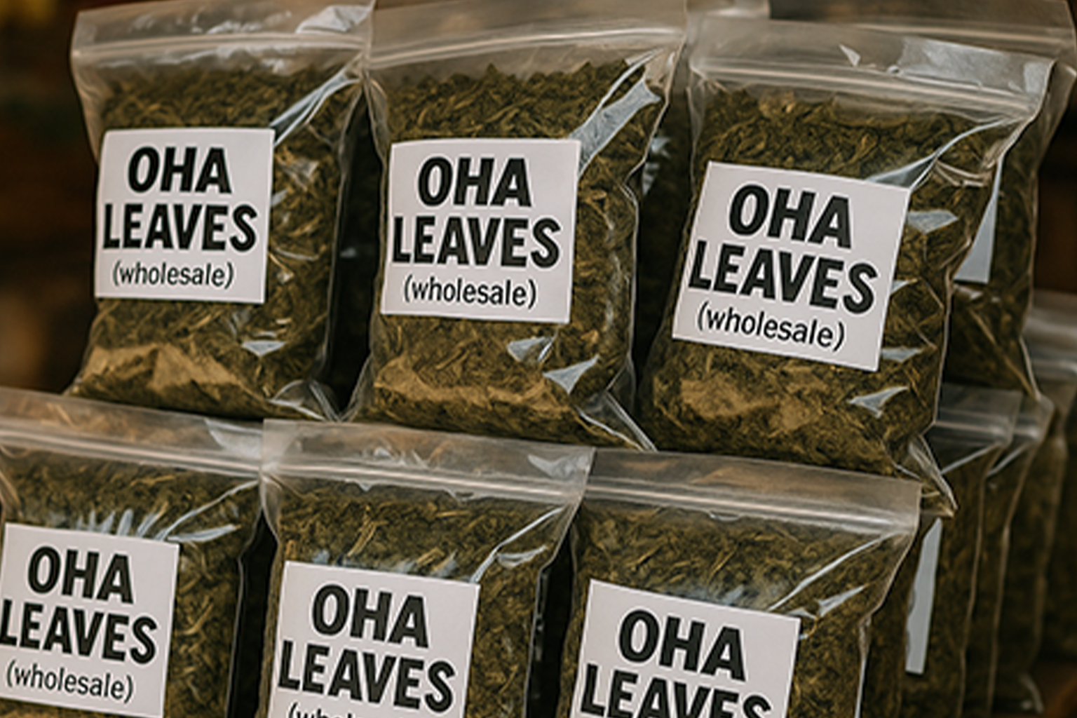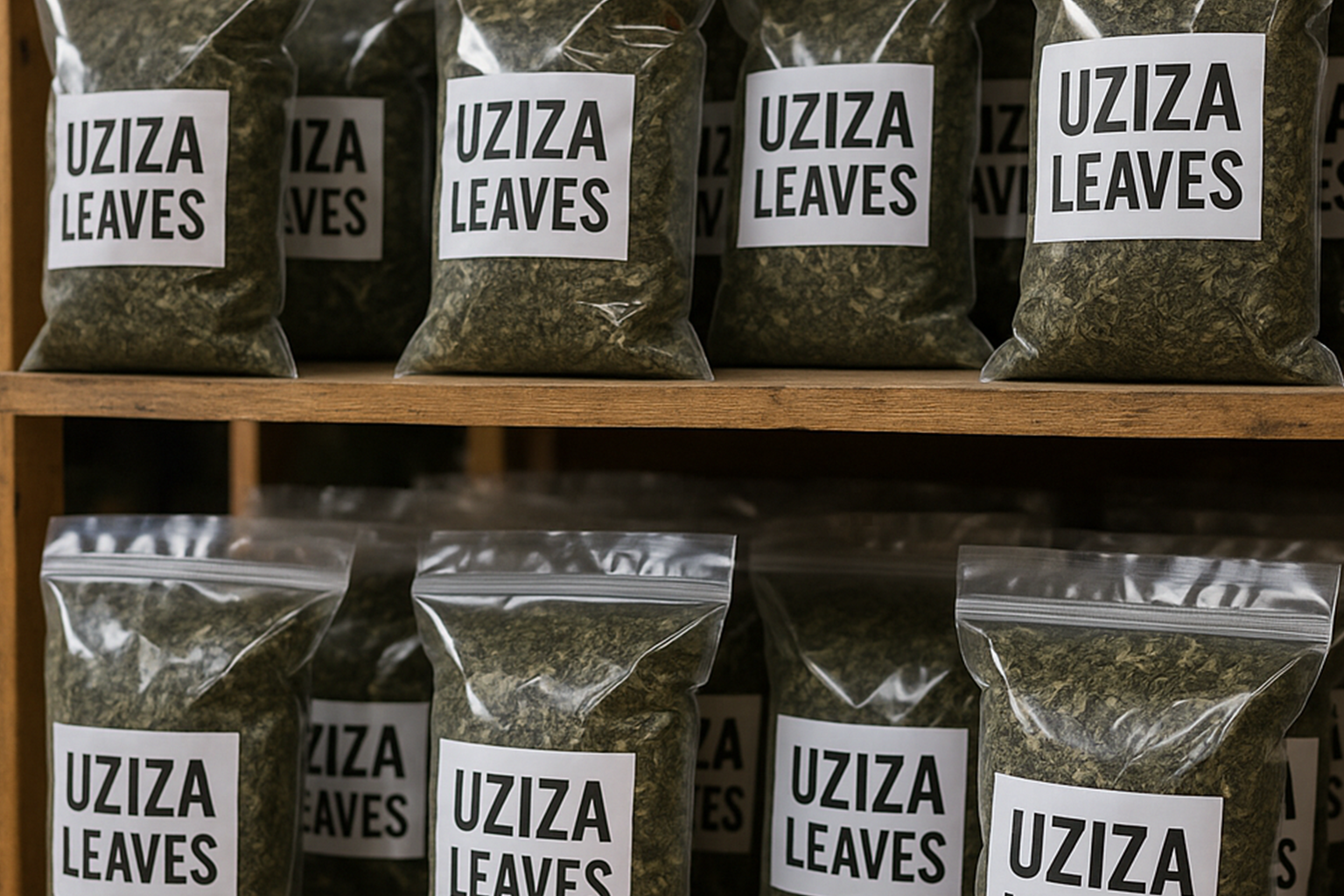 Fresh or dried uziza leaves for cooking and health. Supplied in nets or boxes.
