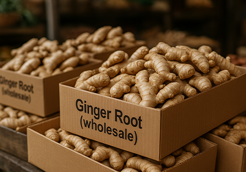 Fresh or dried ginger sold in sacks. Used in food and health remedies.